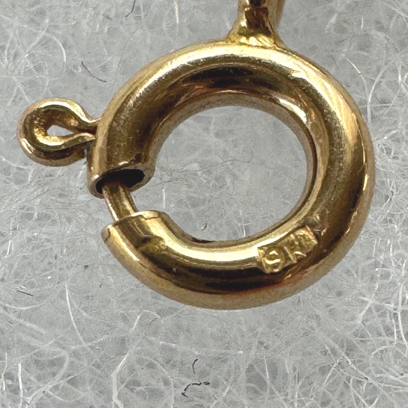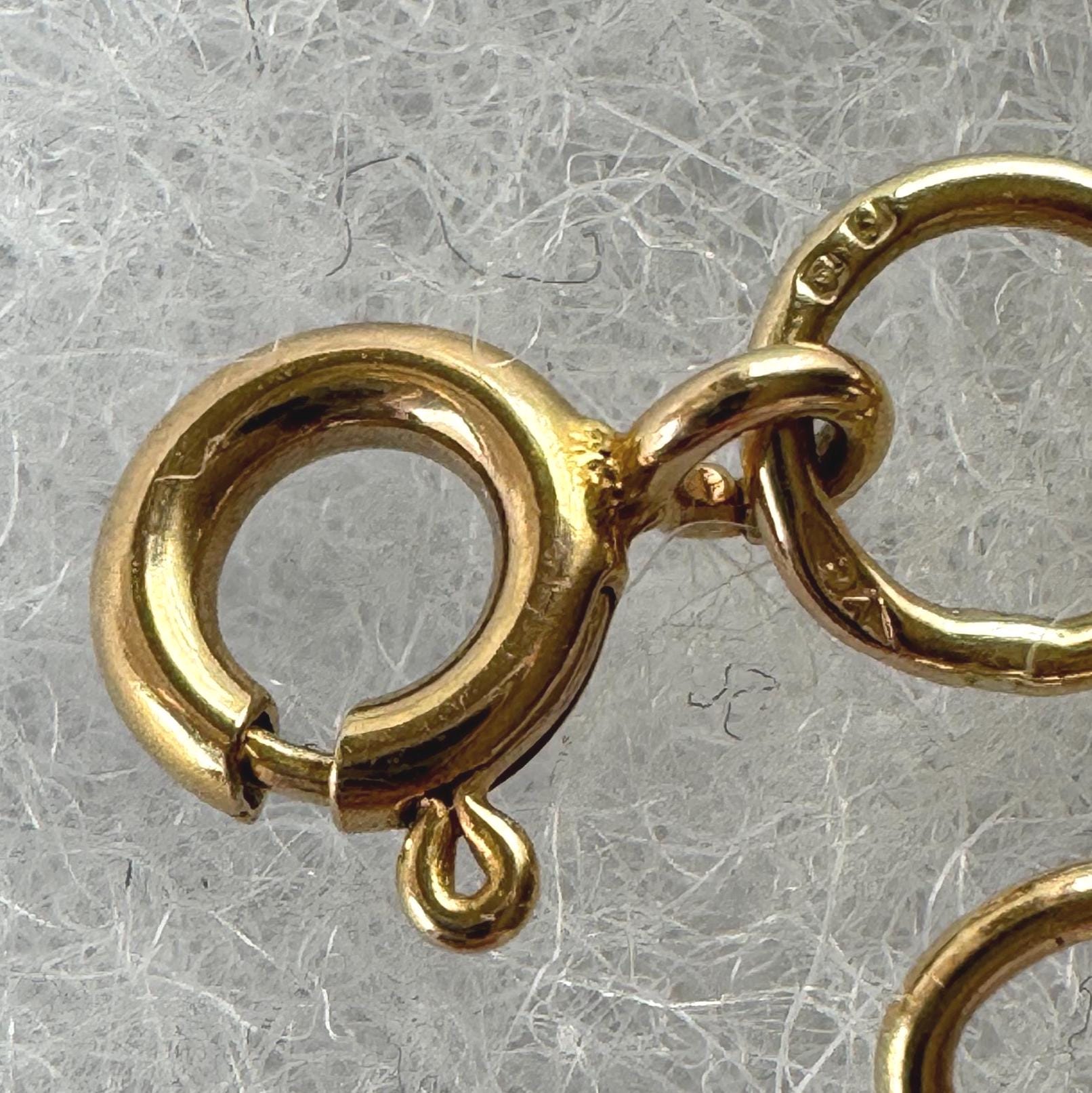 Hallmarks: both end rings soldered and stamped 'leopard head' for London, date letter stylized 'i' for 1983 and 'YC' makers mark. Clasp stamped '9K'