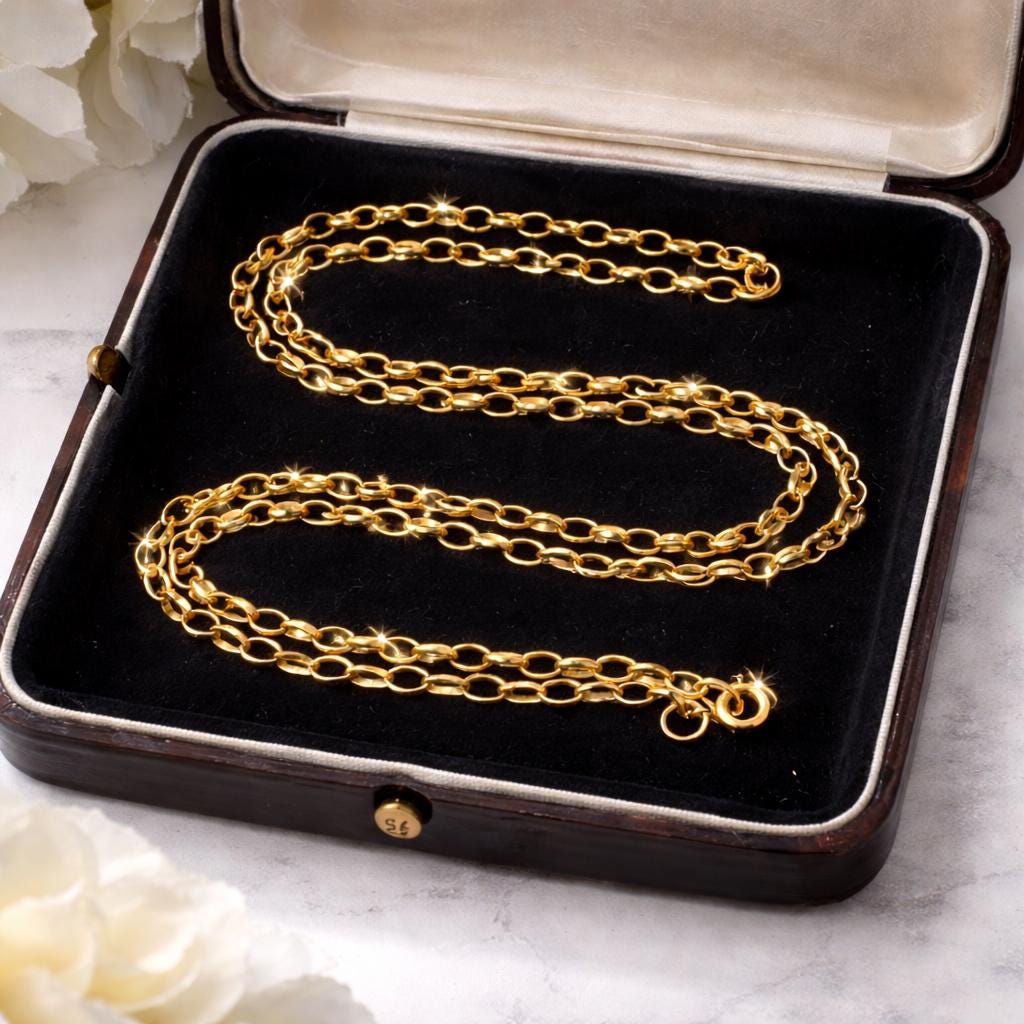 At a full 69cm (27 inches), its elegant oval links create a soft, fluid movement, catching the light with a subtle, eye-catching sparkle at every turn. With over 10 grams of solid gold, it has a reassuring weight in the hand and on the neck—substantial without ever feeling heavy, and a clear reflection of its quality.