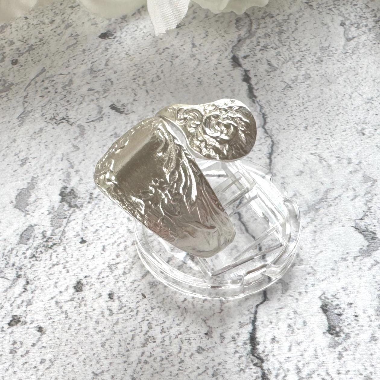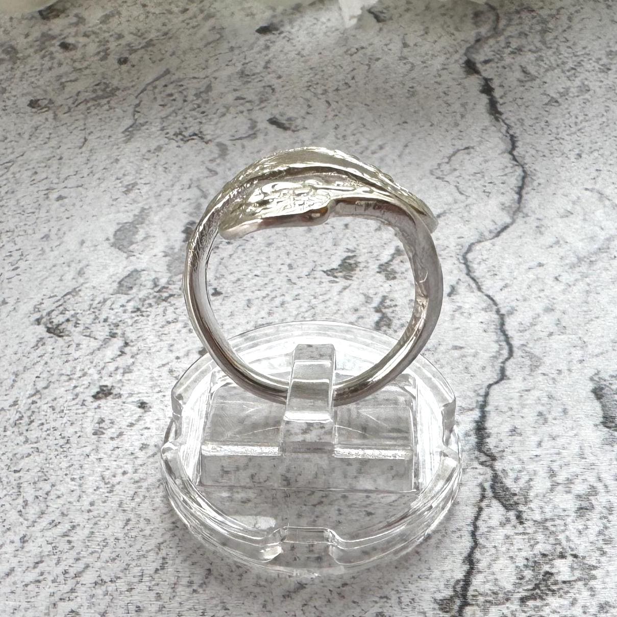 The perfect example of high-quality upcycling, this striking 800 silver ring began life as an authentic antique spoon dating to the Edwardian era. Expertly reworked, it now forms a sinuous, almost serpentine wrap design ring that coils elegantly around the finger, offering superb finger coverage and sculptural presence.