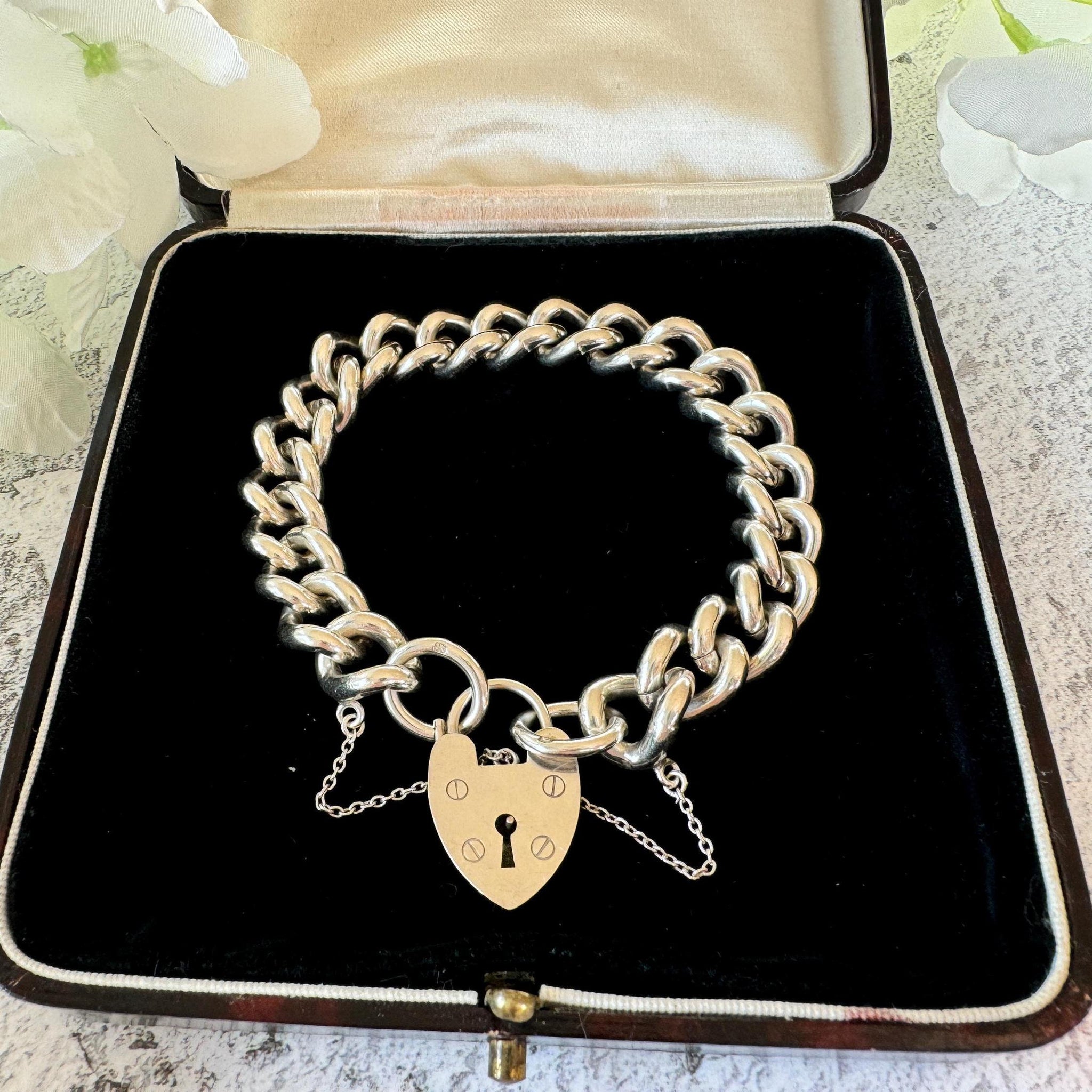CONDITION: in overall excellent vintage condition with minor surface wear in keeping with age. The heart padlock clasp is in perfect working order and closes with a solid snap. The bracelet has been professionally cleaned and polished so it's ready to wear or to give as a gift.