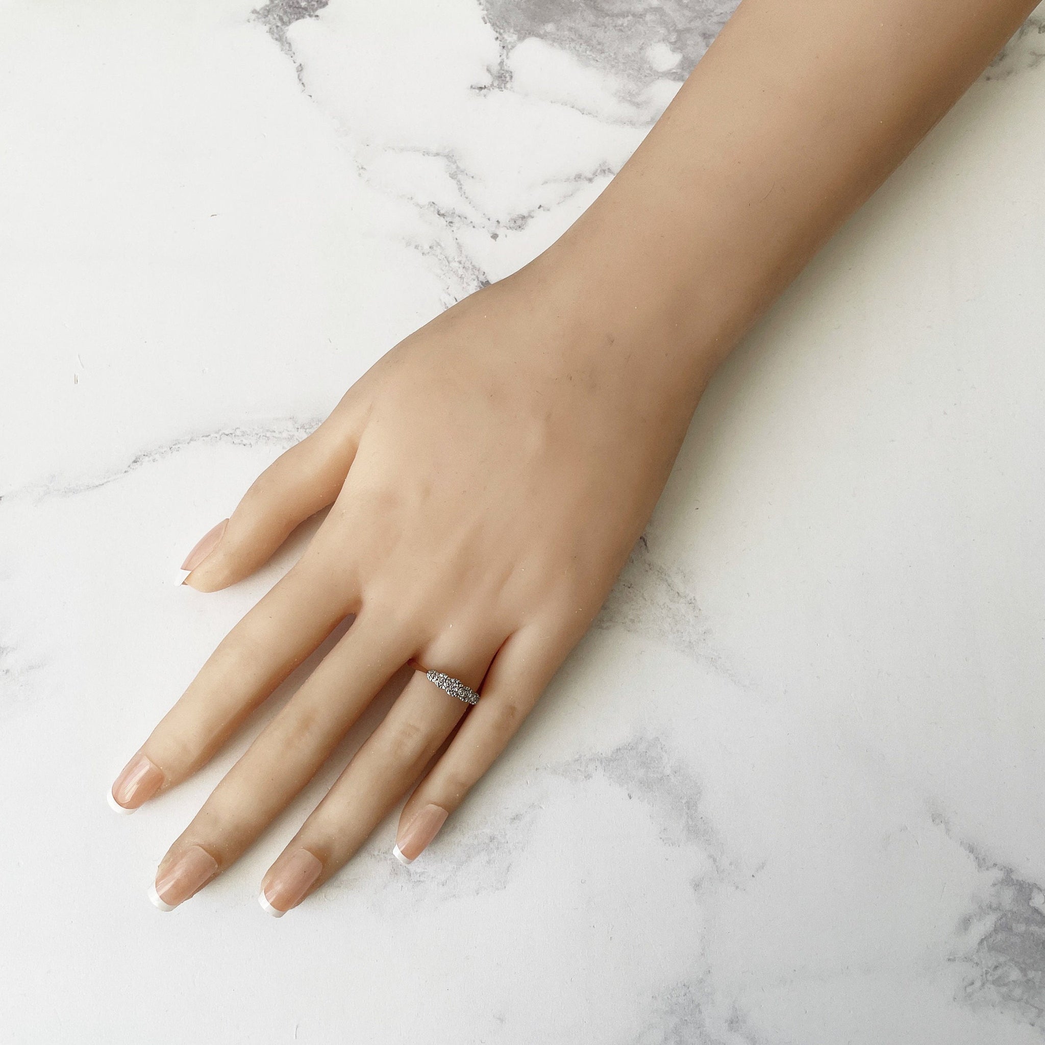 The diamonds are a very small size and subtly graduated. They are star-set in bright white platinum and accented in sparkling milligrain granulation that gives the illusion of much larger stones that carpet the whole curved face of the ring. A durable setting that safely protects the precious diamonds and results in an elegant and carefree ring that you can happily wear everyday.