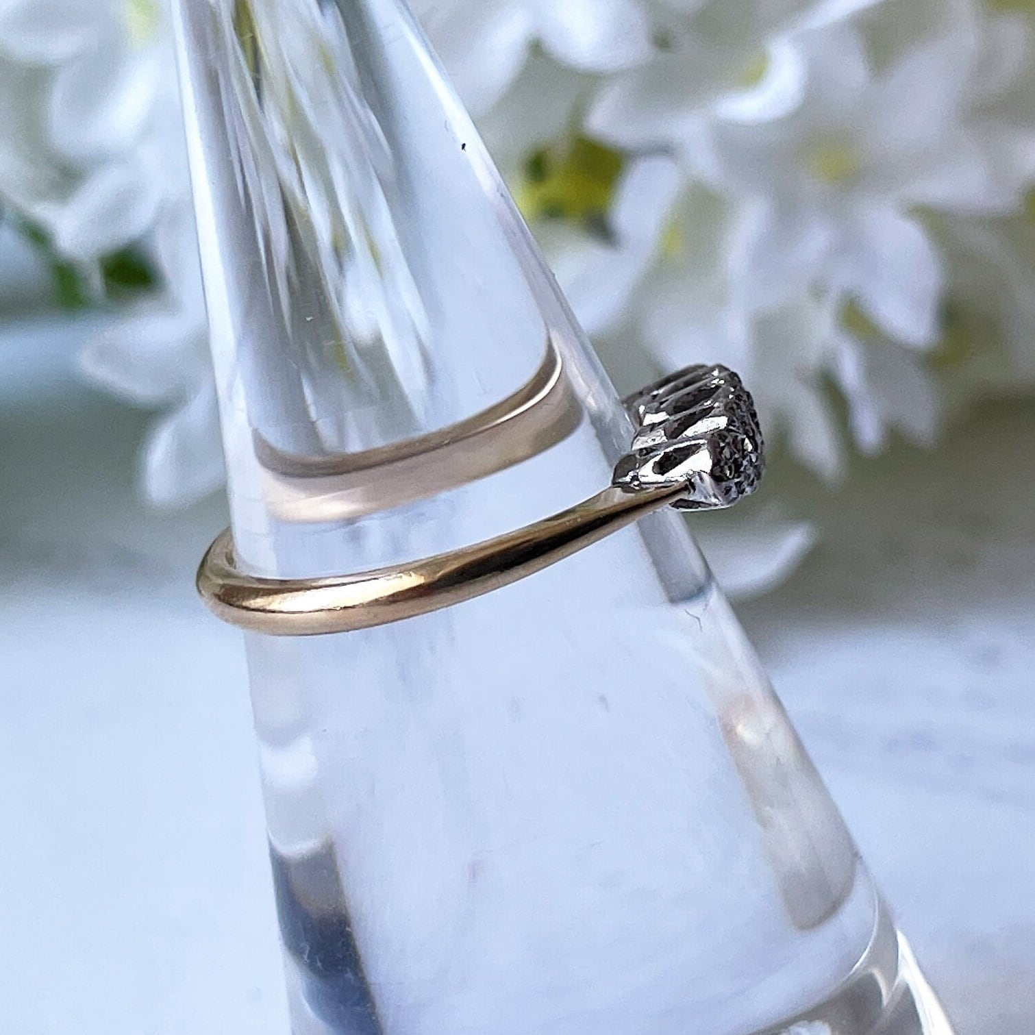 Knife edge V-shaped shoulders and a fairly thick band in luxurious 18ct yellow gold complete this lovely period piece that would make a very sweet engagement ring. Full of old world charm she is equally at home as a feminine dress ring and can certainly hold her own when worn stacked with other beautiful antique rings.