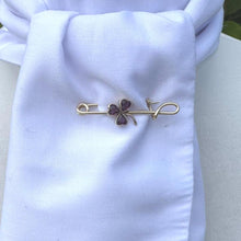 • Charger l'image dans la galerie, Antique Victorian Amethyst Heart Shamrock Rolled Gold Stock Pin Brooch. Nappy Pin Style Lapel/Cravat/Tie Pin. Antique Equestrian Jewellery