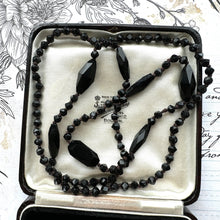 • Carica l'immagine nel visualizzatore di Gallery, Antique Victorian Black Vauxhall Glass Faceted Bead Necklace. 32" French Jet Opera Necklace. Victorian Mourning Jewellery