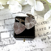 A fab pair of quality English sterling silver vintage cufflinks bearing full hallmarks for London 1970. The face of the cufflinks are made in a bold curvy kite shape and they machine turned in intricate guilloche engraving in a striking sunburst pattern. Bold and super stylish the posts are elegantly angled, a nice extra design feature.