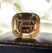 Crafted in the 18th or early 19th century this incredibly sweet and dainty citrine paste (glass) Georgian intaglio seal is a love token and engraved "Forget Thee? No!" Perhaps it was given by a lover who was embarking on a long journey!