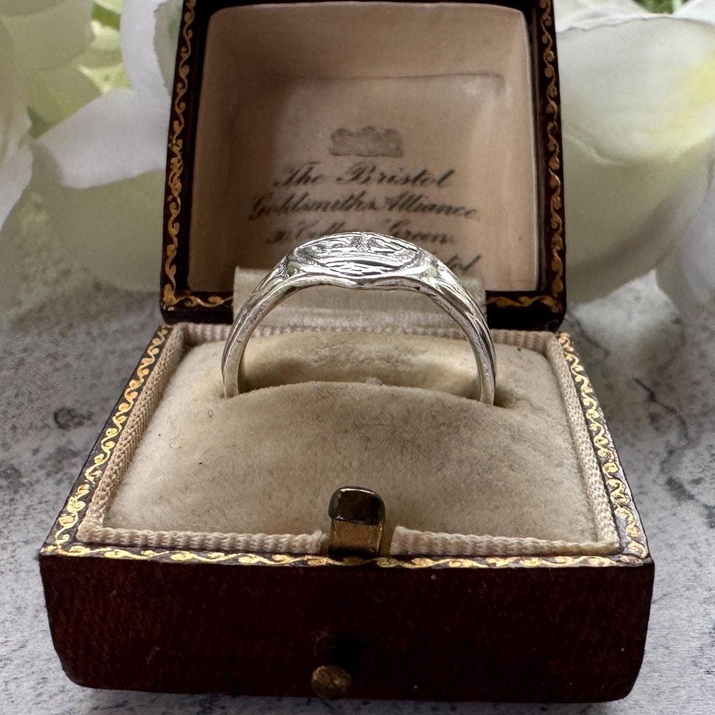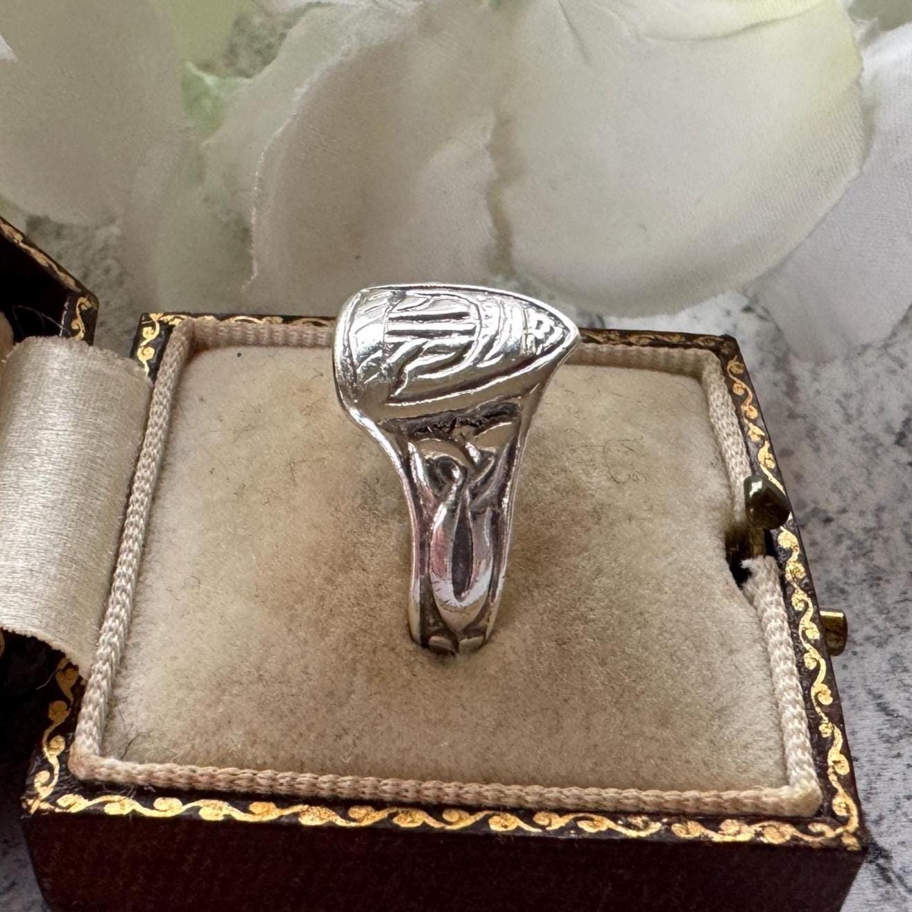 CONDITION: in good antique condition with moderate wear as you might expect in a sliver ring this age. Has been professionally cleaned and polished and is ready to wear or give as a gift
