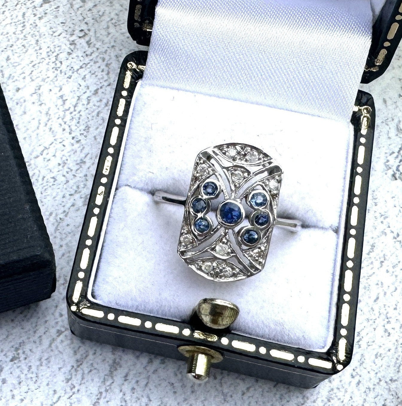 Antique 18ct White Gold Diamond & Sapphire Cluster Ring