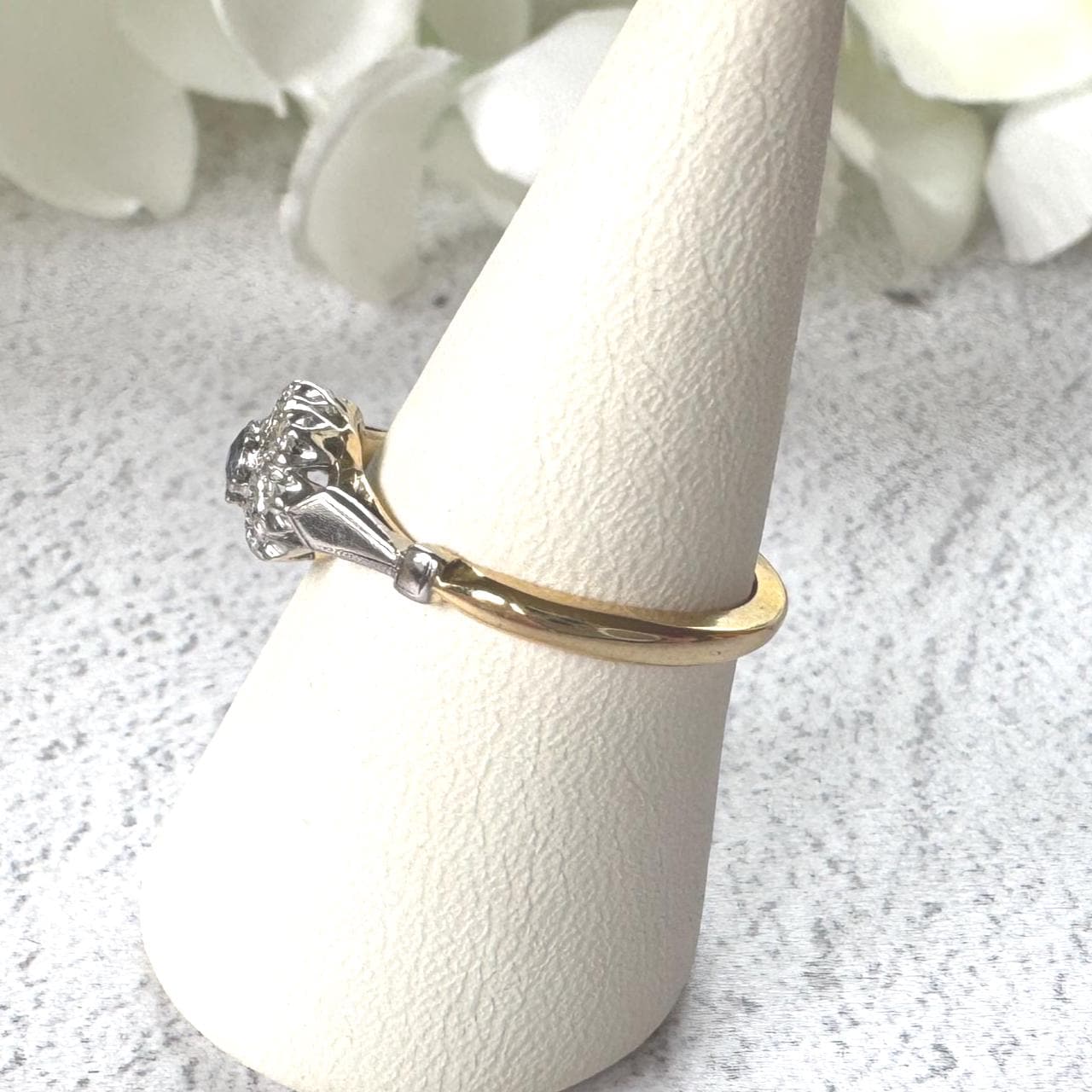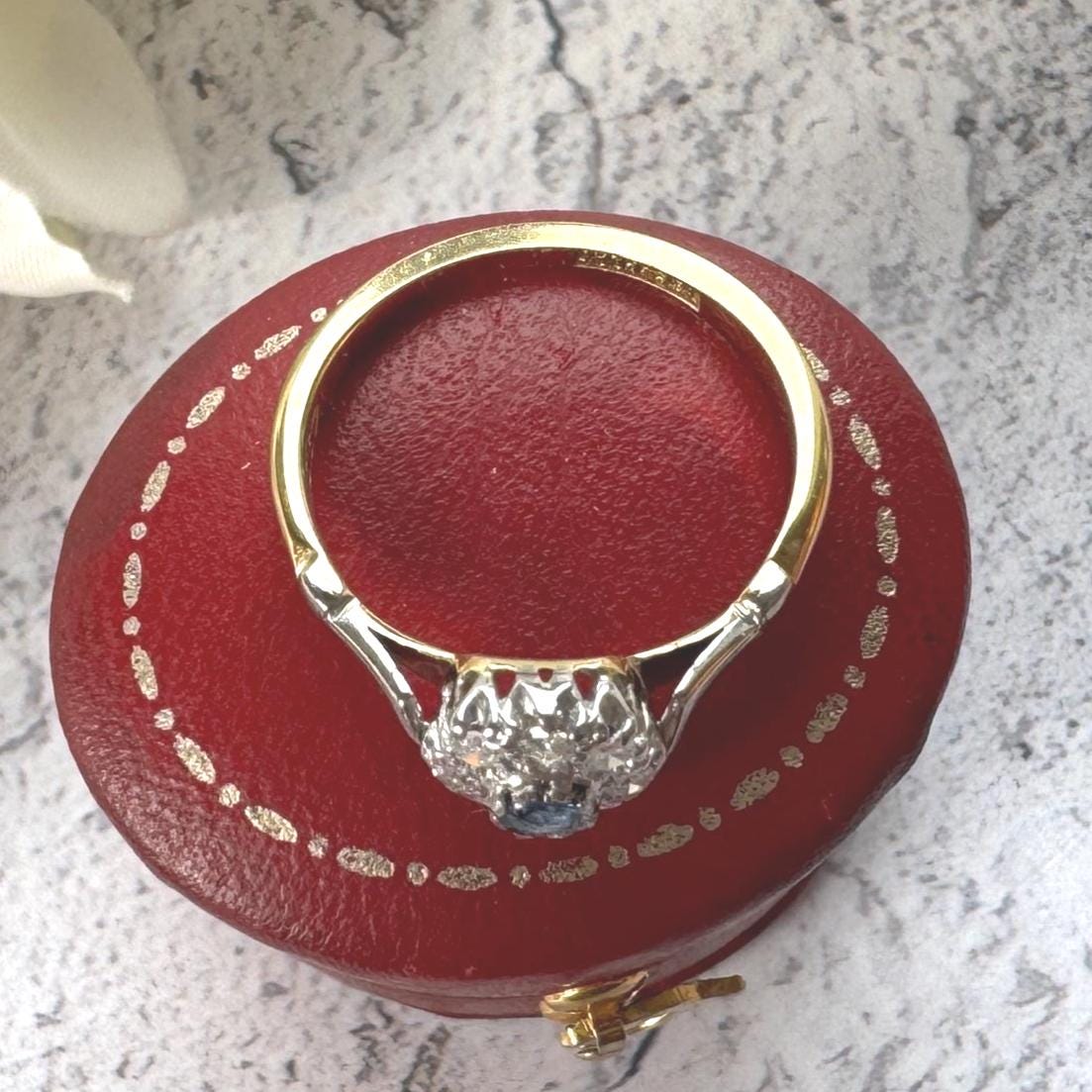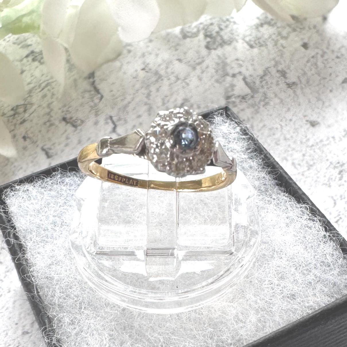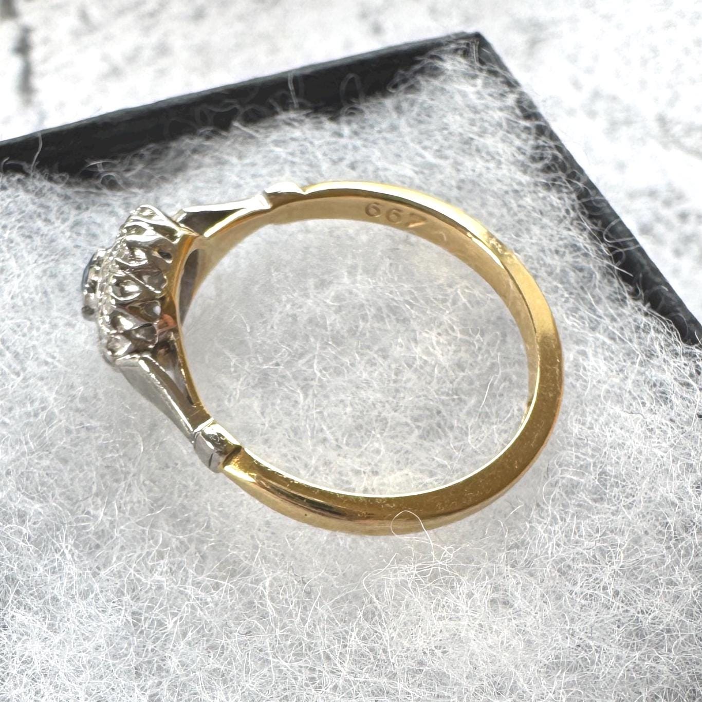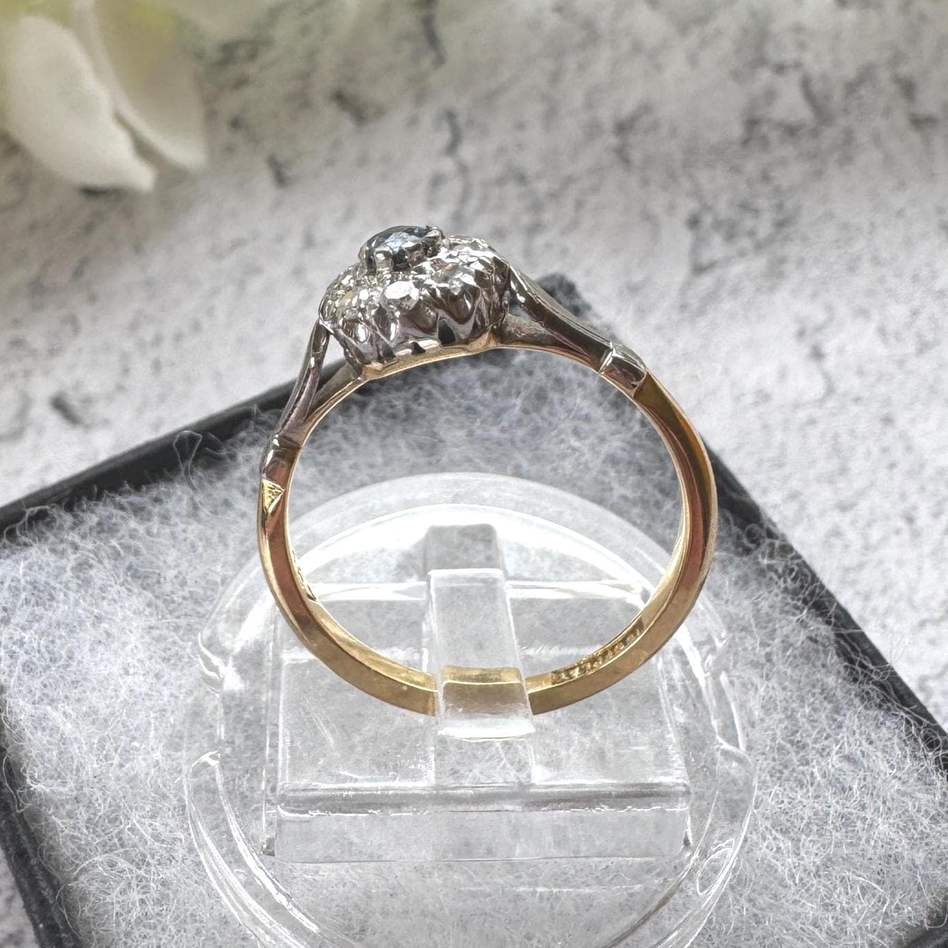Antique 1920s Sapphire Diamond Cluster Ring: 18ct Gold & Platinum Edwardian/Art Deco Engagement Ring