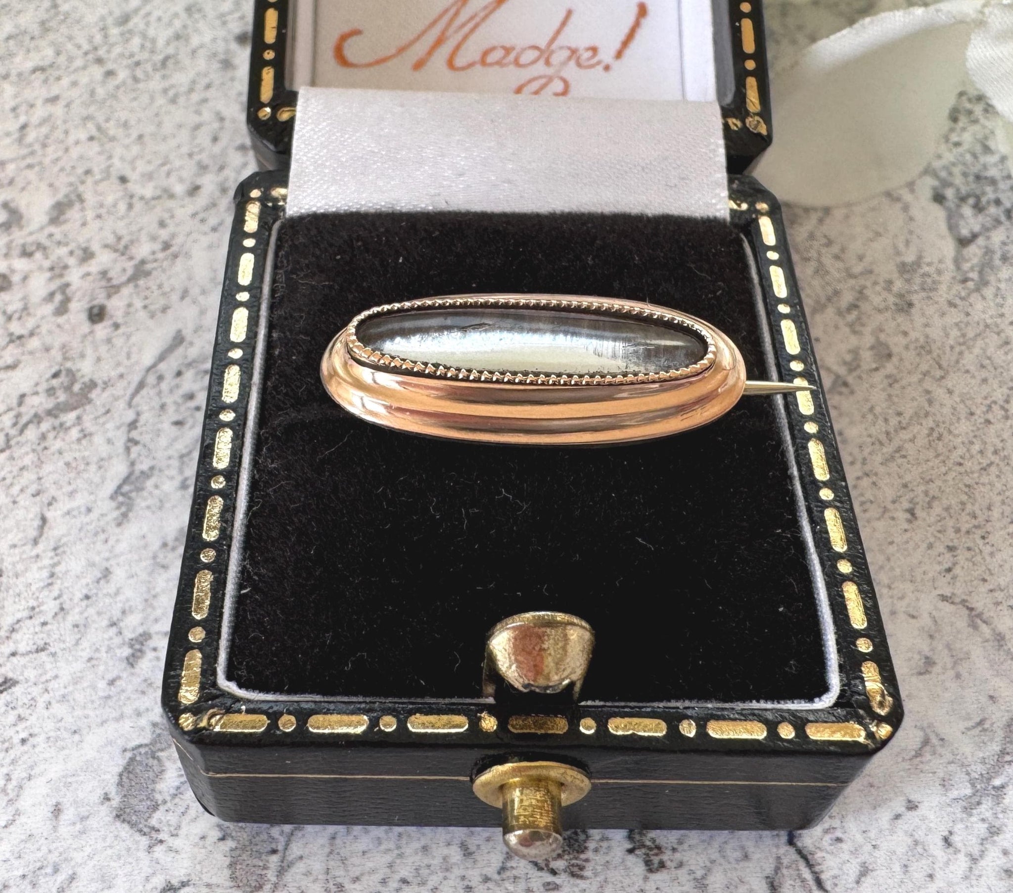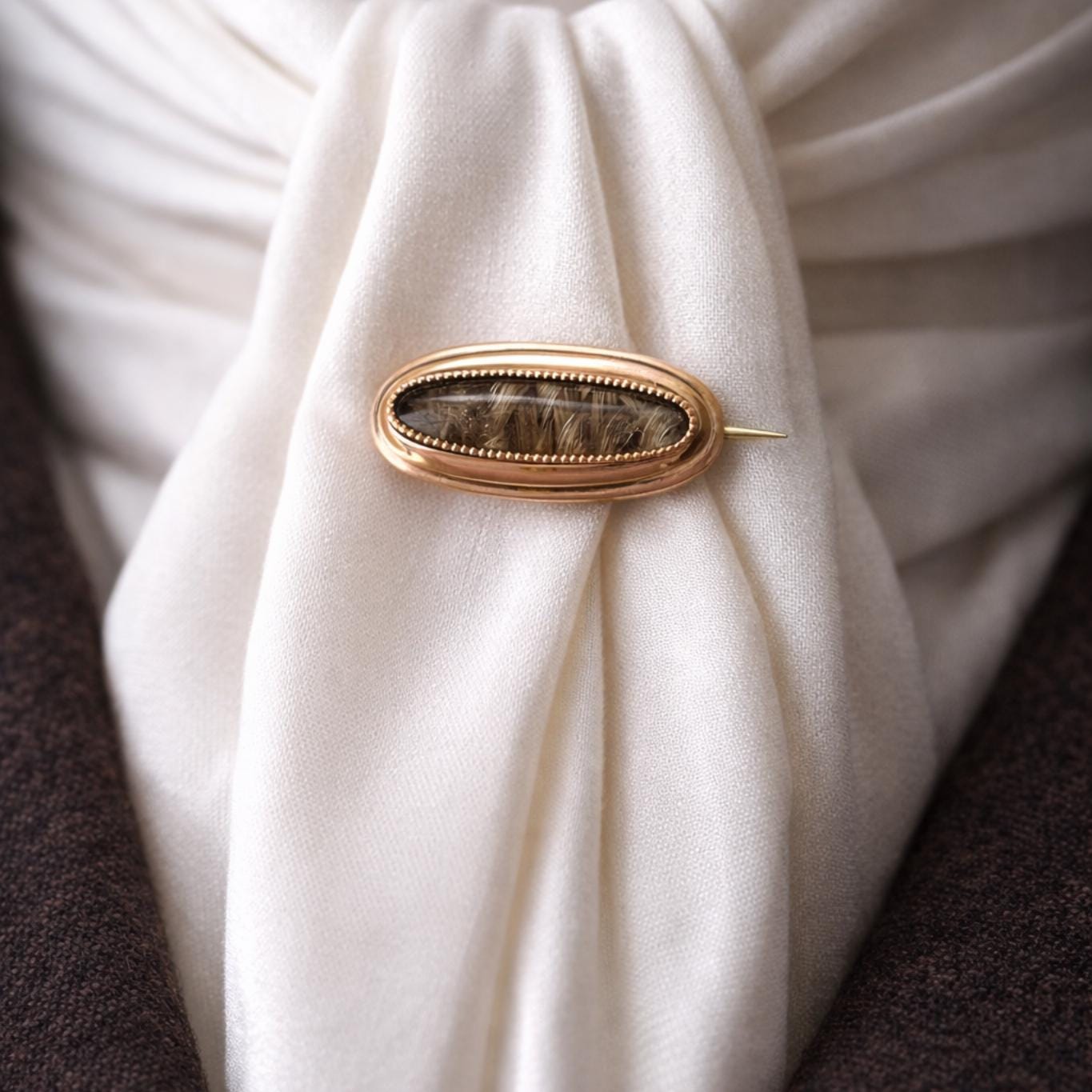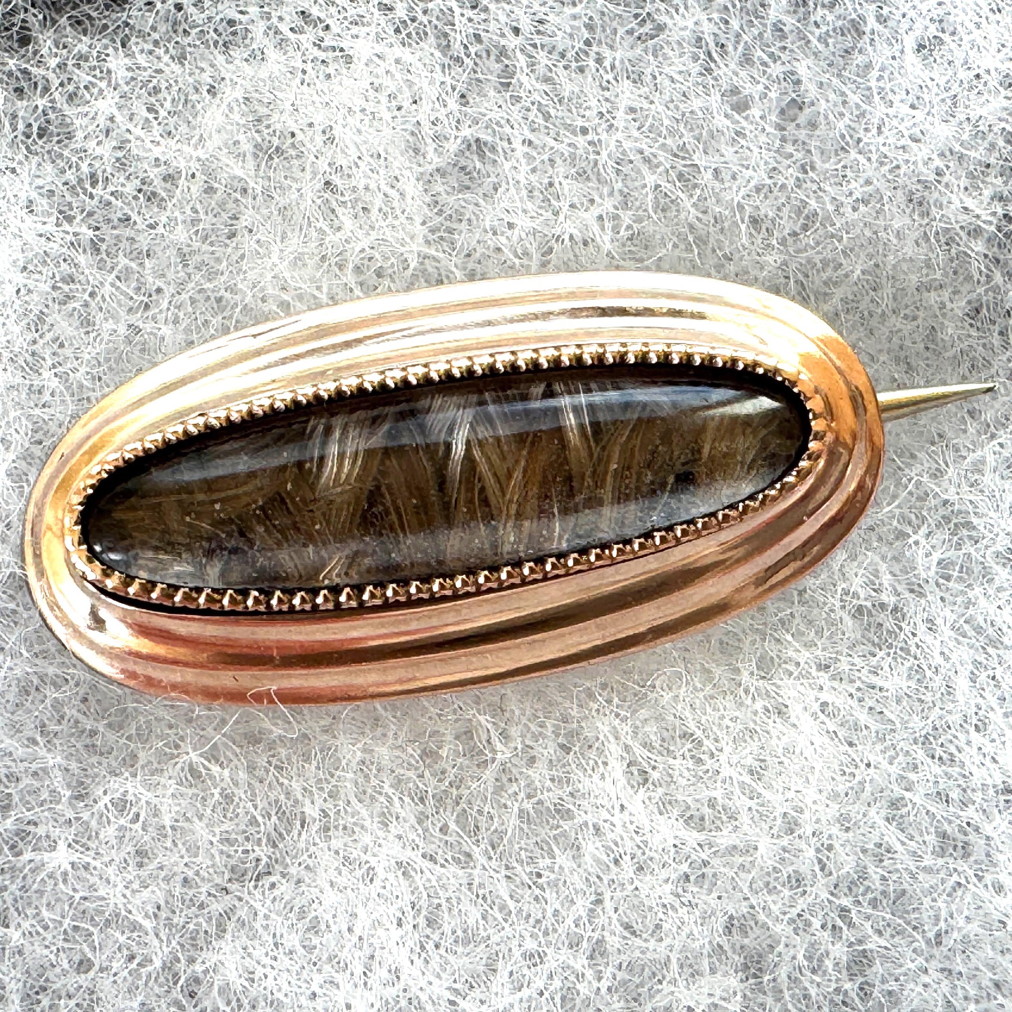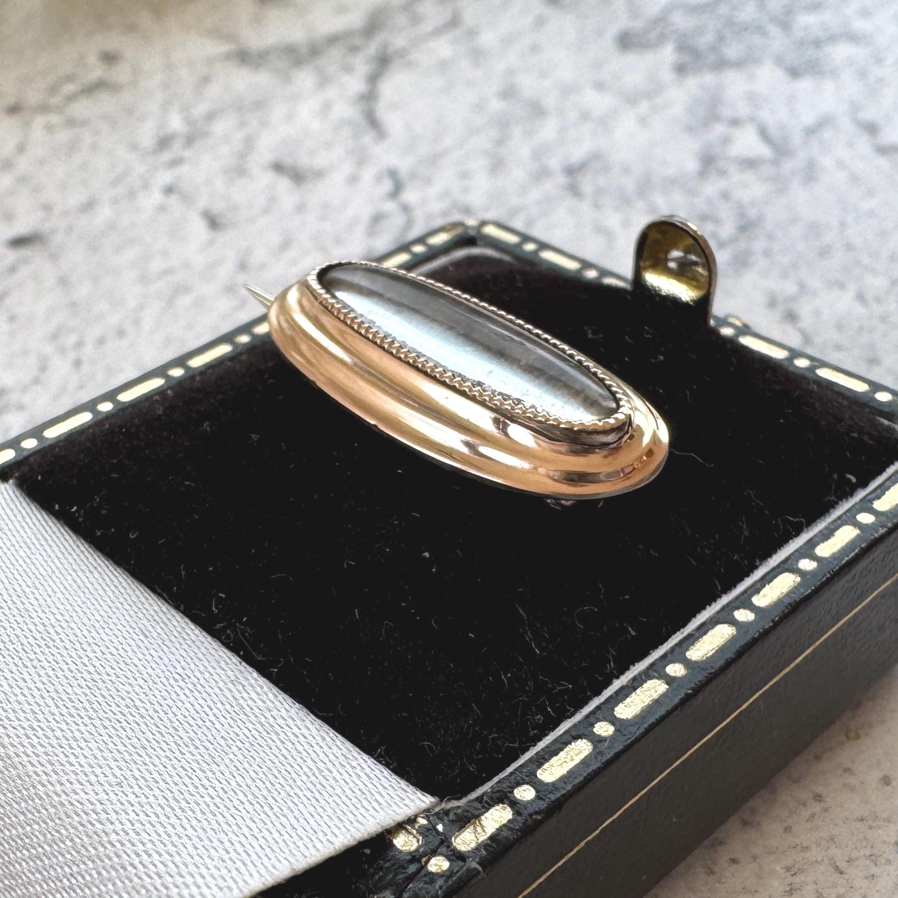 Although antique hairwork jewellery is closely associated with mourning, pieces such as this were just as often worn as sentimental love tokens or keepsakes. Suitable for both ladies and gentlemen, these small brooches were typically worn on a gentleman’s cravat during the Georgian era and today look equally striking on a lapel, scarf, or collar.