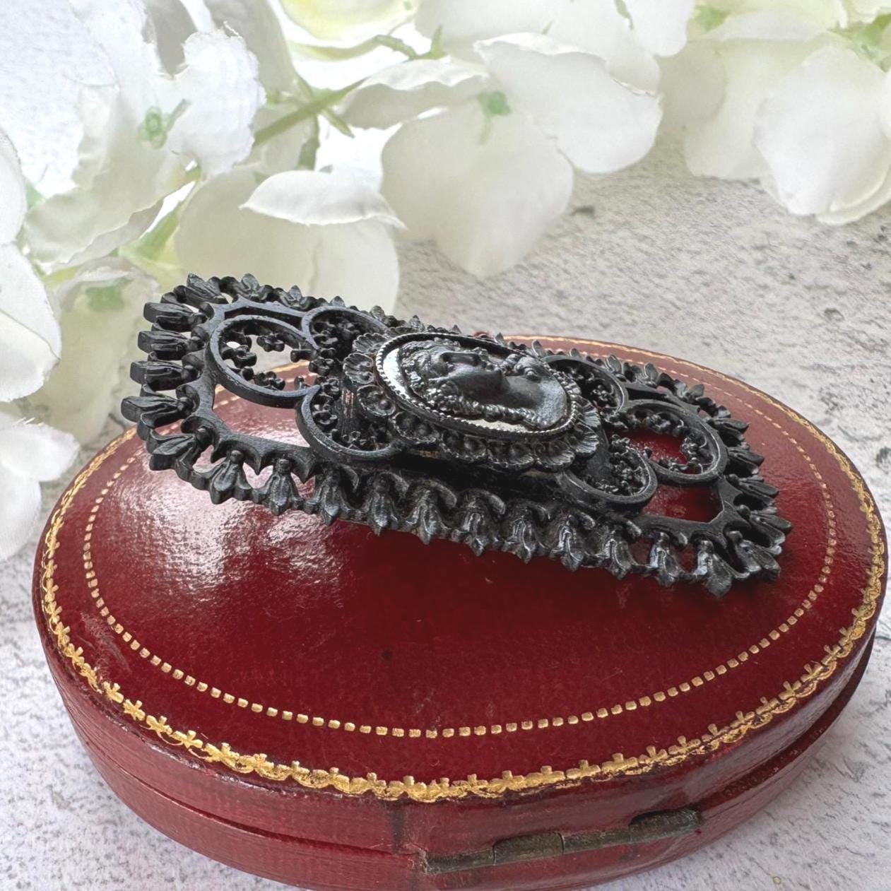Rare Antique 19th Century Berlin Iron Large Neoclassical Brooch
