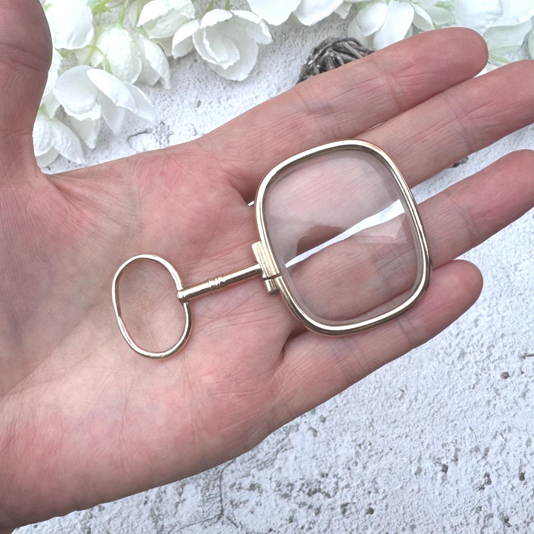 Quizzing glasses were extremely popular pieces of jewellery during the Regency era when almost every fashion plate showed elegant young ladies and gents wielding them with great aplomb. Practicality aside, they could and were used to glare at a person as a manner of set-down or mockery.