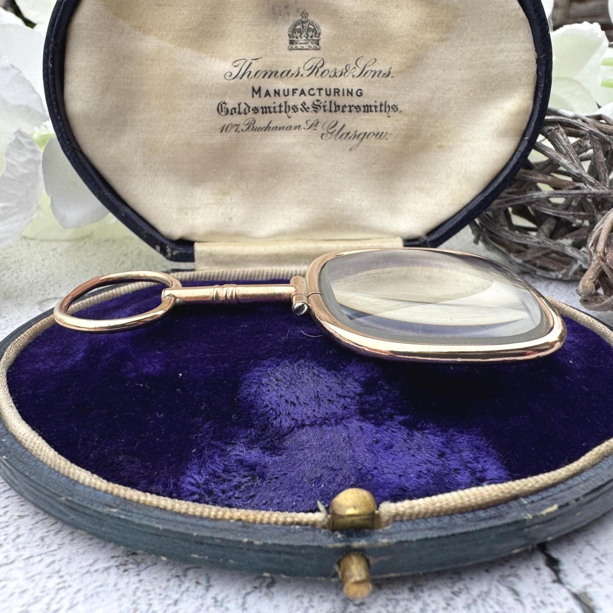 Antique Georgian Magnifying Glass Pendant: 9ct Gold Regency Era Quizzing Glass