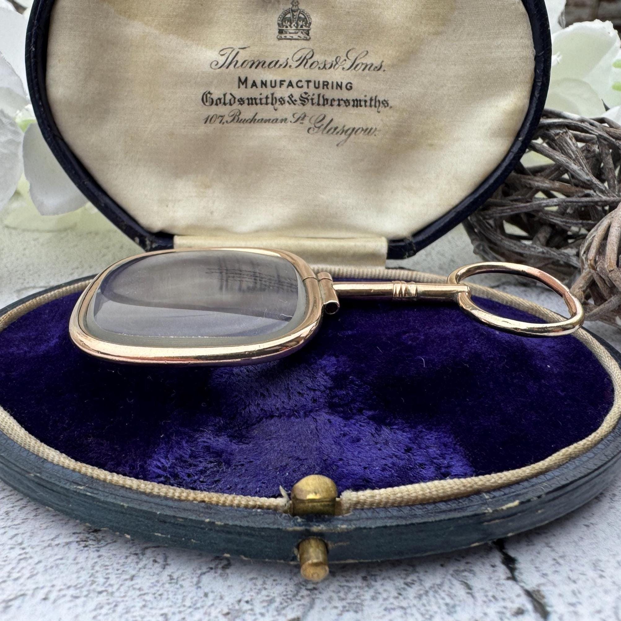 Antique Georgian Magnifying Glass Pendant : 9ct Gold Quizzing Glass With Swivel