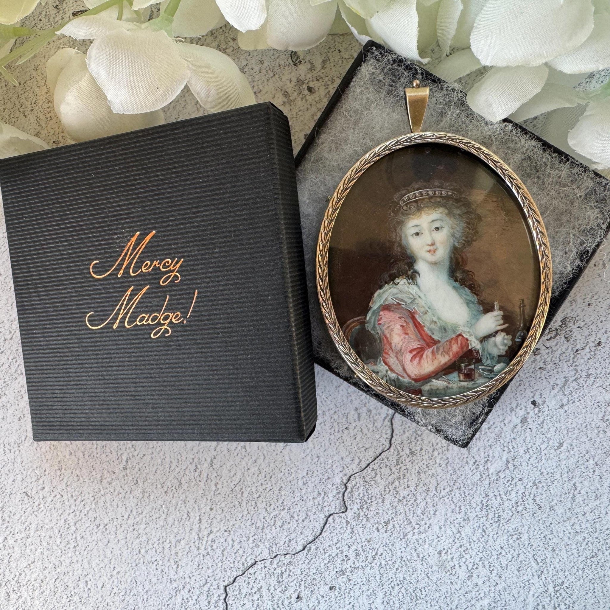 A gorgeous piece, steeped in wonder and history to explore. Portrait miniatures were used as portable and wearable reminders of loved ones long before the advent of photography and they offer us a fascinating glimpse into the past!