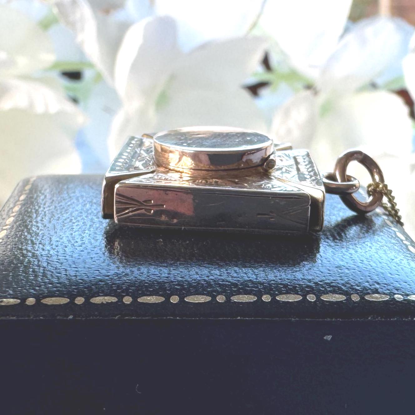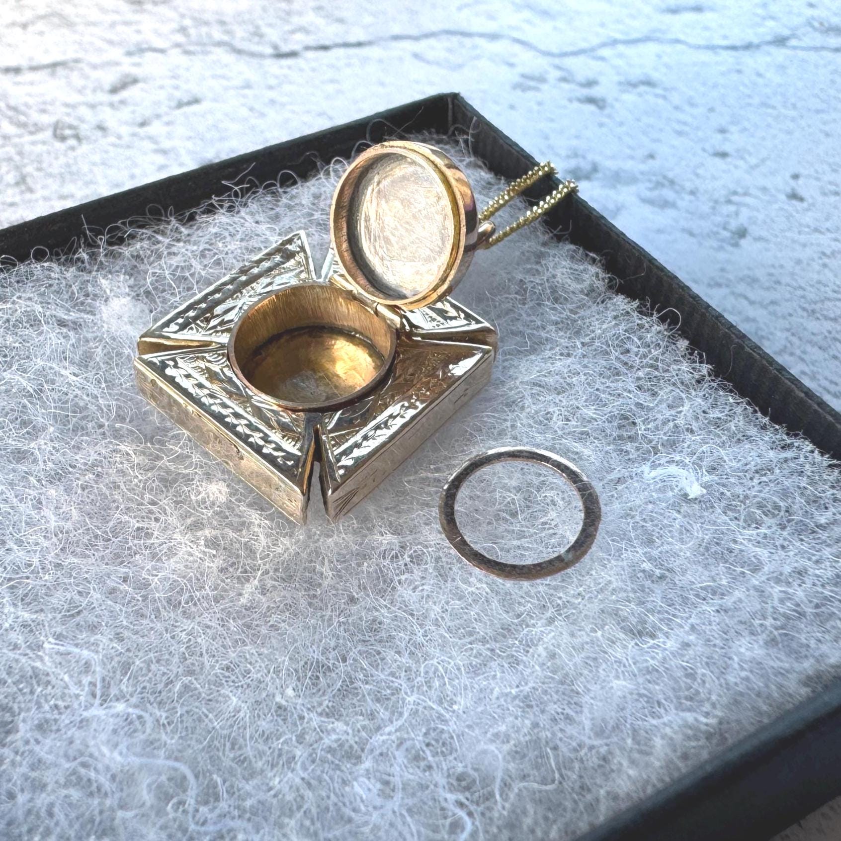 MEASUREMENTS: 7/8"/2.2cm square, locket compartment is 1/2"/1.4cm diameter