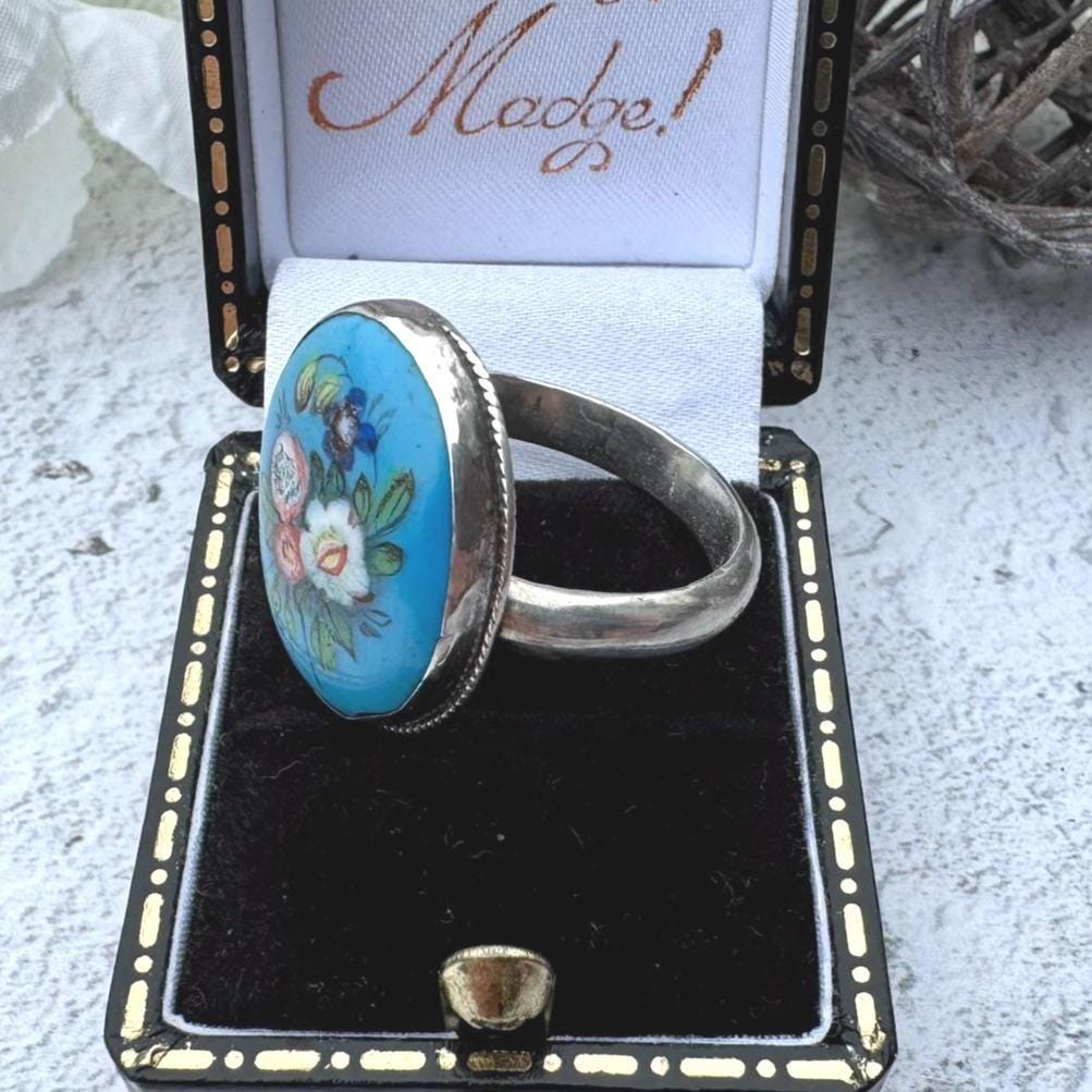 CONDITION: in moderately good antique condition with hand tooling marks and dings in the silver. The rope trim that frames the bezel has worn away where it touches the knuckles showing this ring has been treasured and worn frequently. There is a small area of paint loss in the centre of the top pink rose showing the porcelain underneath, not particularly noticeable however we have priced this piece with wear in mind so please inspect the photos. Far from being mass produced this charming hand crafted Victorian statement ring deserves to be cherished again!