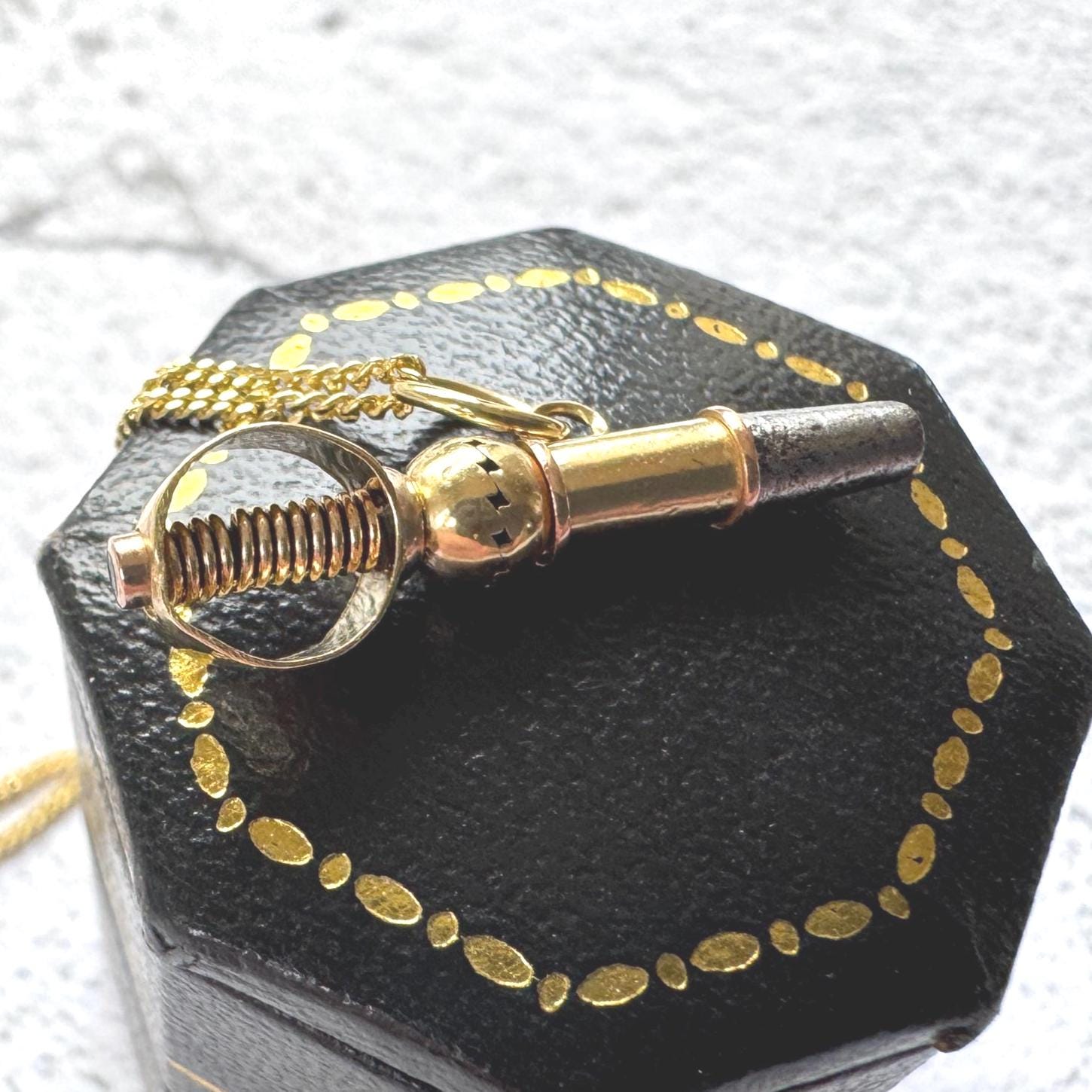 Perfect to add to a charm bracelet or pair with a chain and wear as a unique pendant. Note the chain shown is not included. This unique gold trifle is all you could want from a petite piece of antique jewellery, it would make a novel gift for a 21st birthday (key to the door) or a romantic love token (key to my heart), an absolute keeper!
