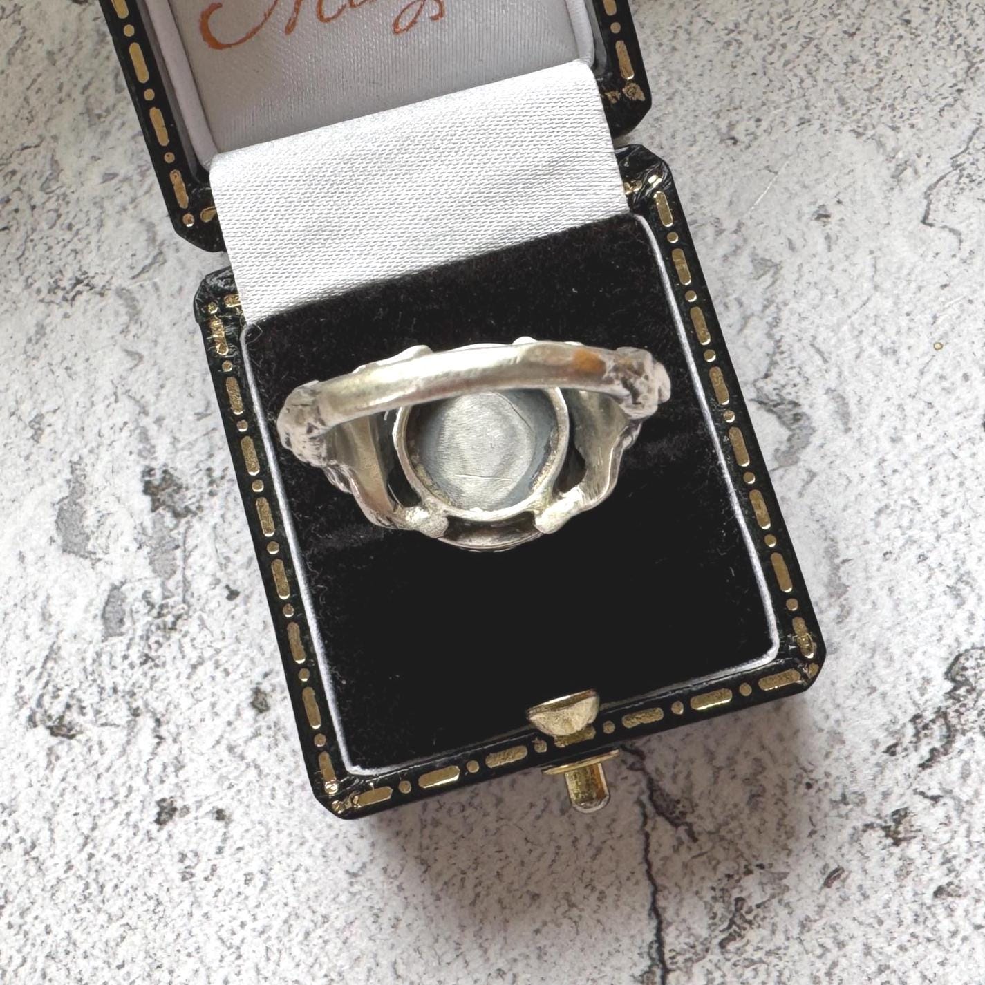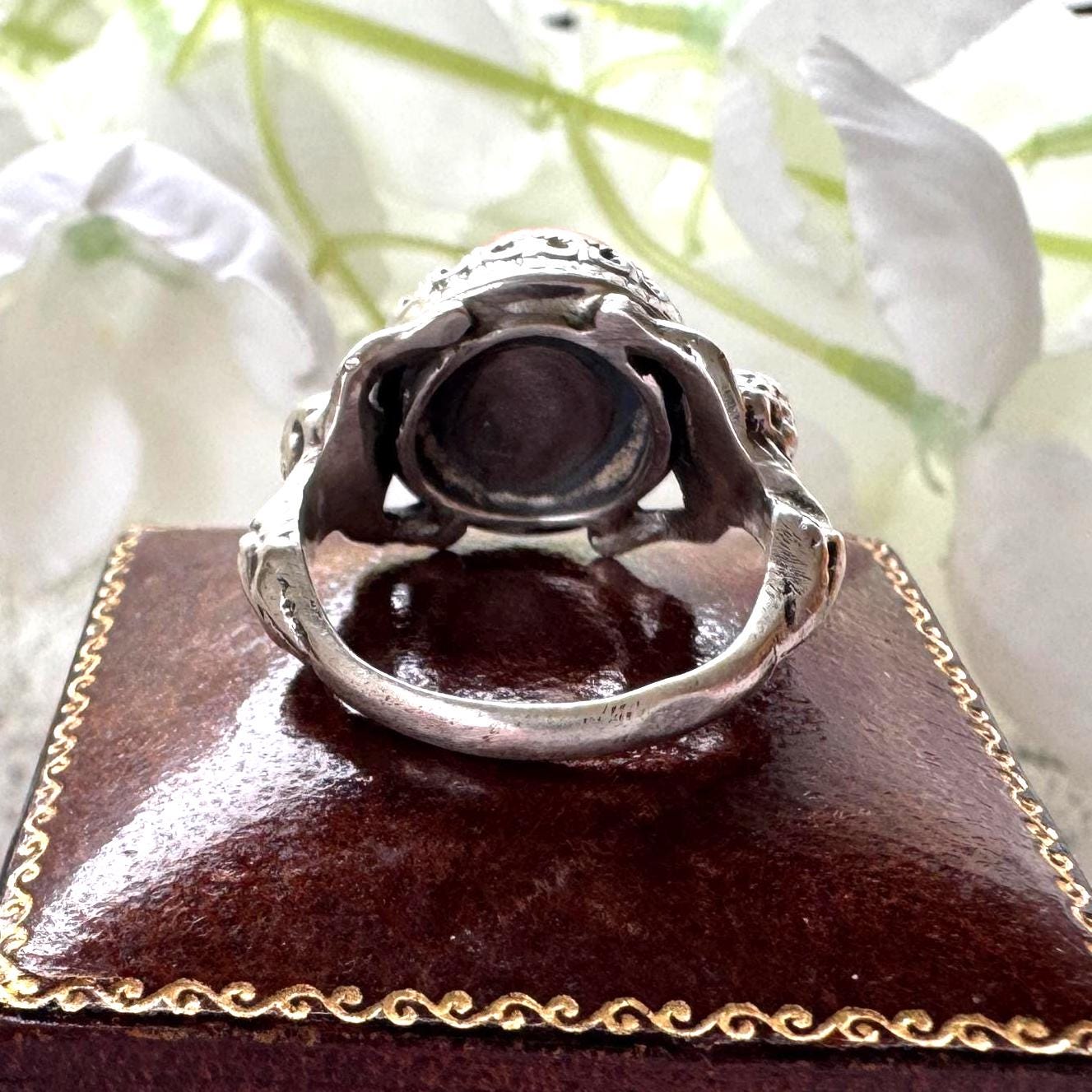 Rare Antique Austro Hungarian Silver & Coral Putti Ring: Hallmarked Budapest c1900
