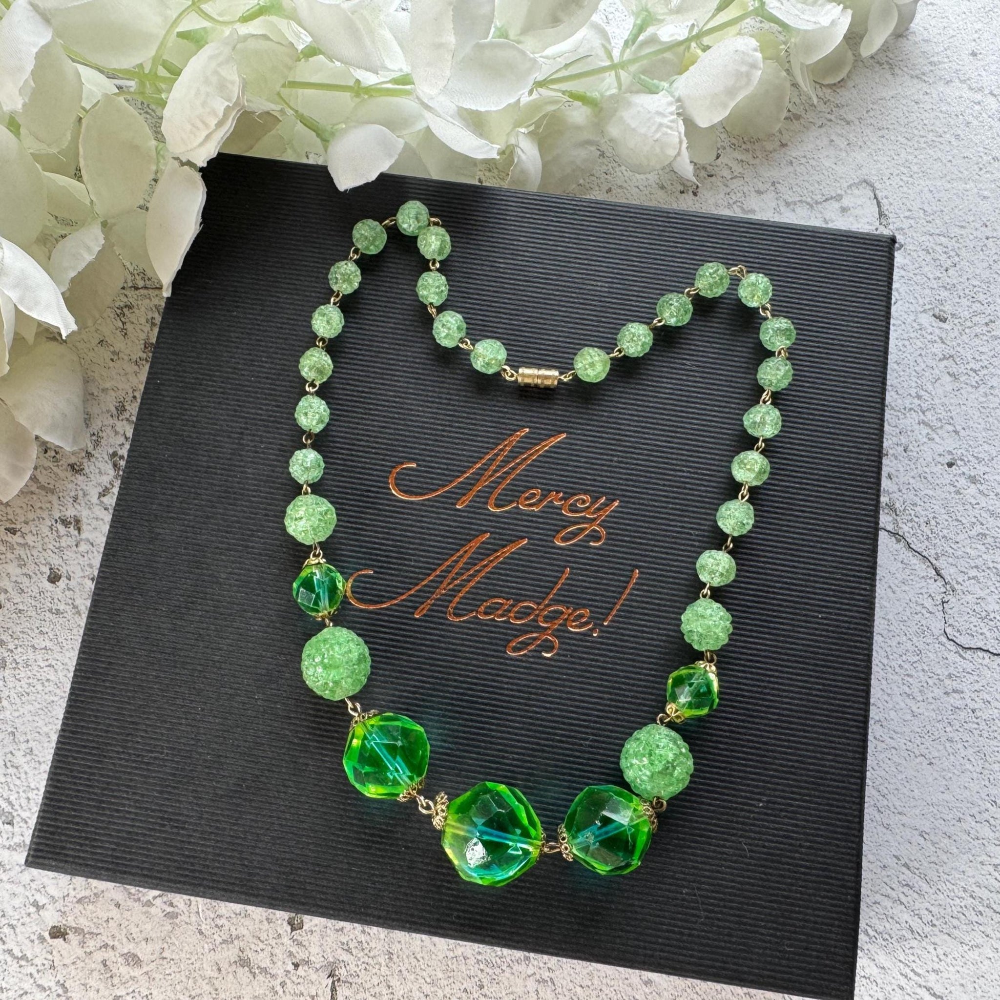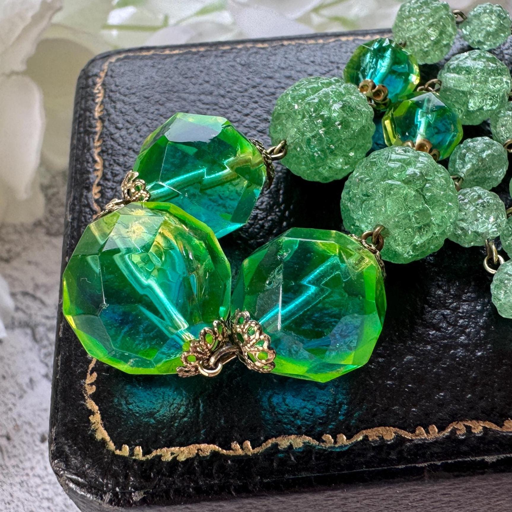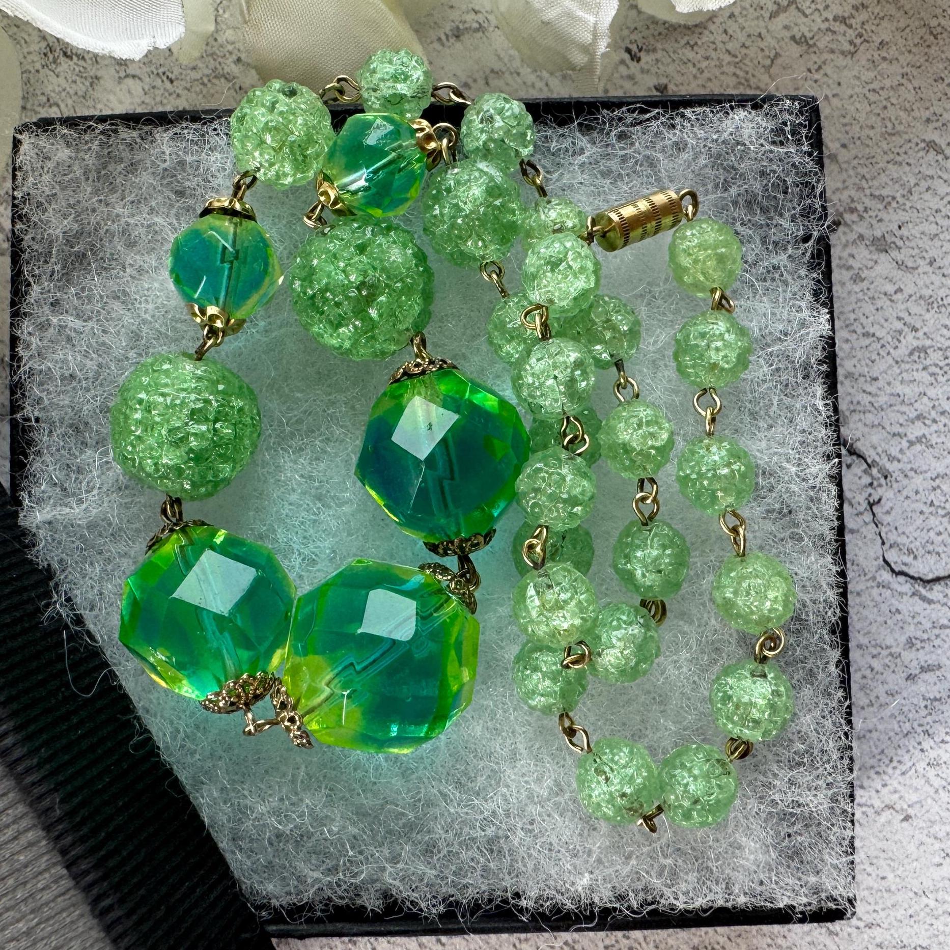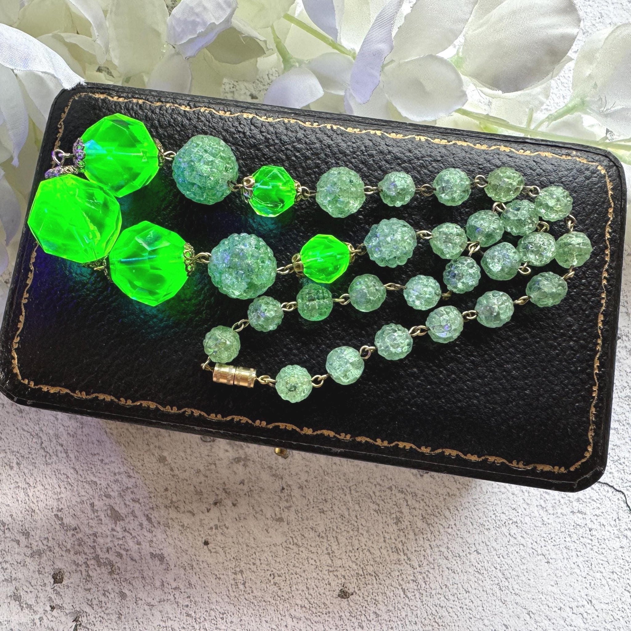 A glowing treasure from the past — perfect for those who adore Victorian glass beads, antique glowing jewellery, or rare vintage necklaces with a story to tell.