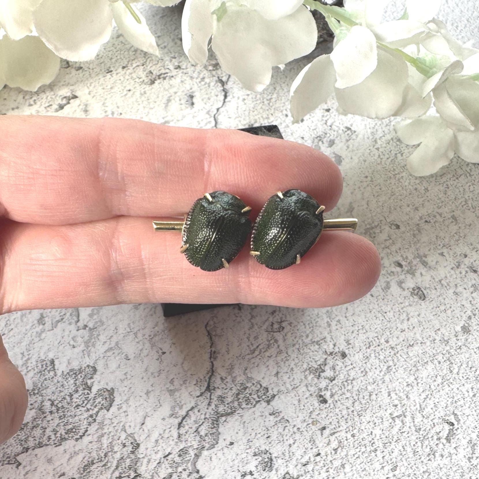• Load image into Gallery viewer, Victorian Real Scarab Beetle Rolled Gold Brooch: Antique Insect Love Token Jewellery