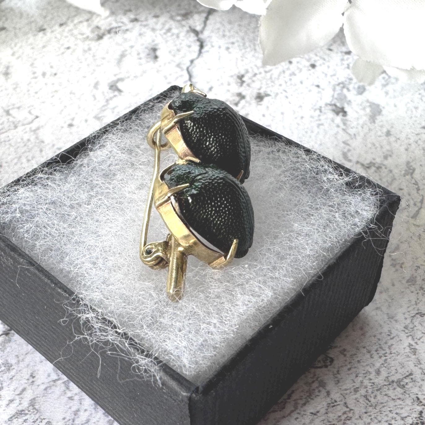 The brooch remains in very good antique condition and it has been professionally polished. The hard glossy deep green iridescent bugs are perfectly preserved and damage free. A real conversation piece and something you don't see everyday, this remarkable brooch is an adorable addition to any antique jewellery collection!