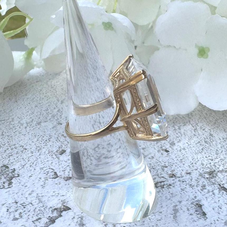 Vintage 9ct Gold 24ct Emerald Cut Rock Crystal Ring